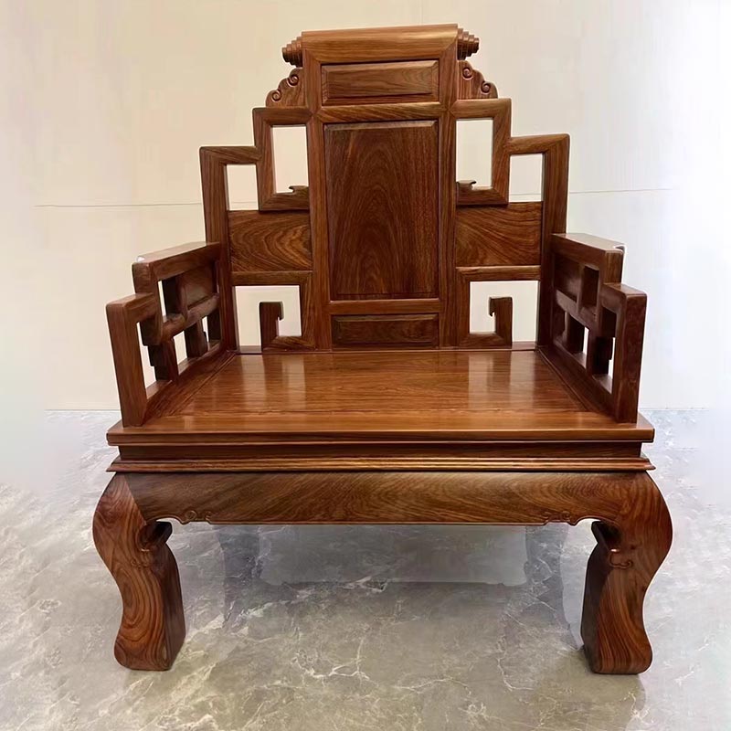 Китайският класически разширен офис стол има великолепна форма и изискан дизайн. Той е като трон, излъчващ величествена и благородна атмосфера. Седейки на стола, можете да почувствате несравнимо чувство на уважение. Това не е просто мебел, но и символ на статус. Осигурява ви удобно място за почивка, а също така показва вашия вкус и статус. Изберете този стол, изберете отличното качество на фабриката за секвои Chuantianjiang и нека животът ви бъде изпълнен с достойнство и лукс. Естествената текстура на червеното сандалово дърво с големи плодове е като течащи облаци и вода, а цветът е топъл и мек. Величествената форма, високата облегалка и широките подлакътници сякаш предават величието на крал.