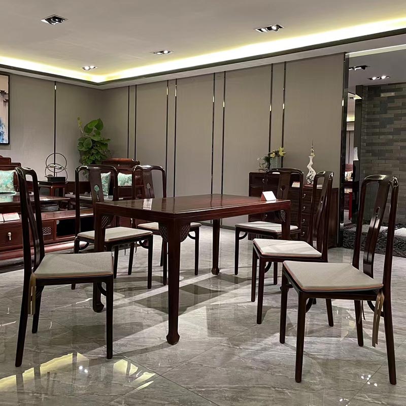 Вие сте добре дошли да дойдете в нашата фабрика, за да закупите най-новата и висококачествена нова китайска правоъгълна маса за хранене. Тази маса е модел на новия китайски минималистичен стил. Ние винаги се придържаме към бизнес философията "детайлите правят съвършенството, качеството определя стойността".